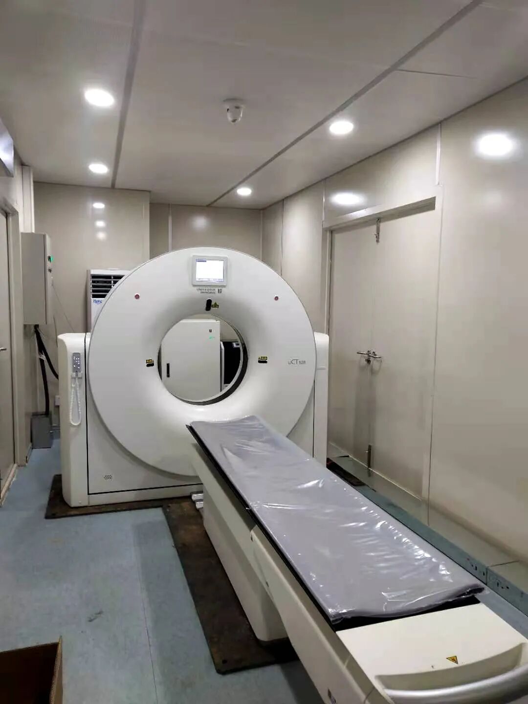 “天眼”方舱CT是针对疫情下的特殊应急环境而打造的,可支持大通量扫描,是独立于室外的全身型方舱检查单元,无需进行场地装修改造。我院经过反复研究、专家论证,确实需要在定点医院安装一台CT设备,鉴于定点医院甘光医院场地等条件限制,医院决定购置方舱CT。