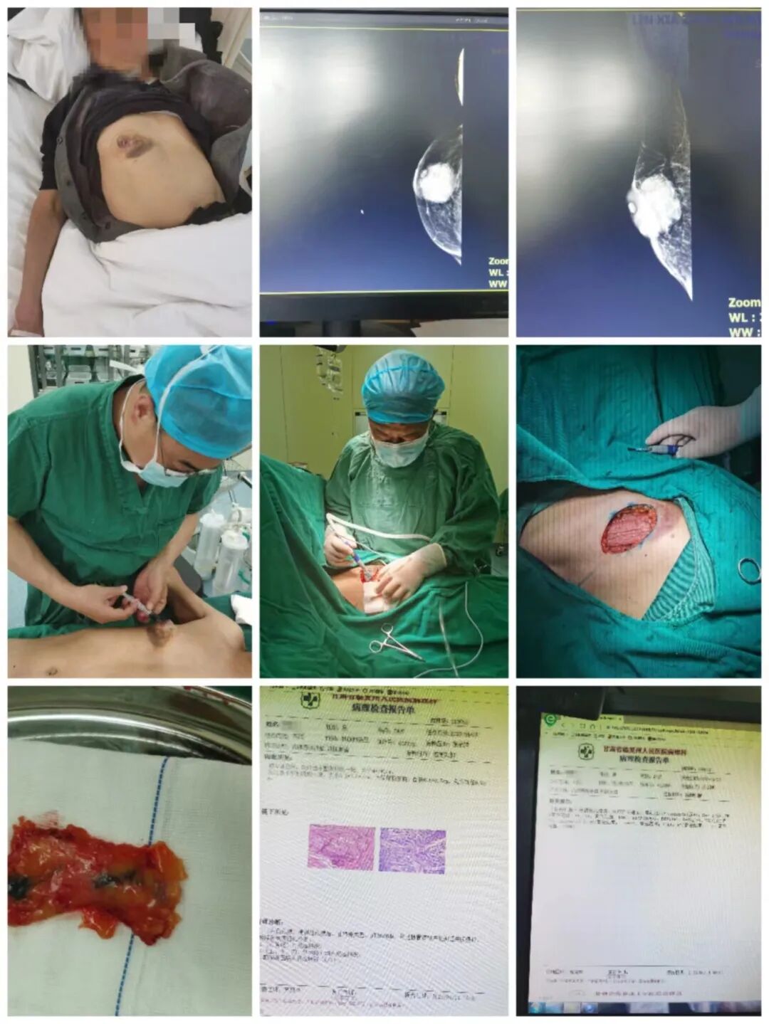 一提到乳腺癌,很多人条件反射是女性的“专利”,认为它属于妇科疾病,但这一女性高发的癌症却并非女性专利,男性也同样可能罹患乳腺癌!近日,乳腺科专家门诊来了一位乳腺癌患者亲属,在诊室内很难为情的掏出手机翻开患者照片给正在坐诊的侯峻峰医生陈述病情。患者男,74岁,系先天性聋哑人,是一名五保户。老汉右侧乳房长出鸡蛋大小的“硬疙瘩”快两年了,四处寻医求治吃药花光了所有积蓄。最近乳腺肿胀接近破溃,不时散发出刺鼻恶臭,加上疼痛难忍,家属最终来到州人民医院想开一些止痛药来减轻患者痛苦。了解到患者基本情况后,乳腺科侯峻峰主任满怀信心地对患者亲属说:“吃药只能暂时缓解疼痛,没法根除,我们乳腺科有能力帮助患者解决恶臭和痛苦,提高生存质量。”,患者入住我院乳腺科后检查结果显示:右侧乳腺浸润性癌、右侧腋窝淋巴结未见转移癌。在综合检查结果、科室集体讨论、远程会诊后行右侧乳腺癌根治+前哨淋巴结活检术,手术达到预期效果。