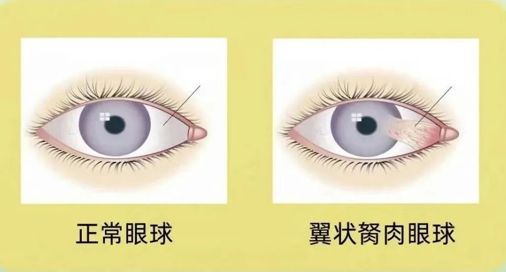 这是一种结膜组织异常增生的良性病变,外观呈三角形肉状,常从眼角向黑眼球(角膜)蔓延,形似“翅膀”。若不及时干预,可能遮挡瞳孔影响视力,还会引发眼睛干涩、异物感或散光。