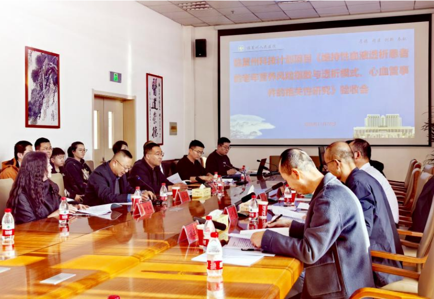2025年11月10日,临夏州人民医院肾病科科研项目《维持性血液透析患者的老年营养风险指数与透析模式、心血管事件的相关性研究》验收会在我院顺利召开。会议由州科学技术局党组成员、副局长马玉山同志主持,验收专家组由省、州5名专家组成,我院副院长魏学全,课题负责人暨血液净化室副主任李晓钟,以及科技局相关工作人员、科室医护人员共30余人参会。